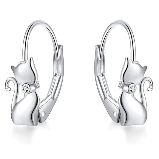 Trumium Authentic 925 Sterling Silver Long Tail Cat Hoop Earrings Colorful Zircon Wedding Fashion Jewelry