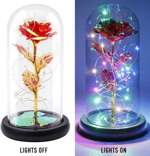 Rose Flower:This is a colorful led light Rose Flower in a glass dome. This colorful rose flower will never wither and die. The Rose Flower in glass dome is perfect and impeccable.