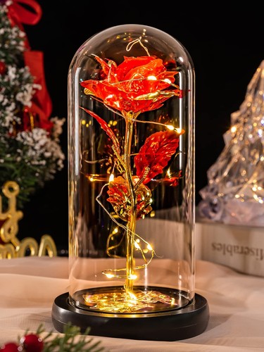 Transparent Glass Cover:The glass cover of our rose lamp is made of transparent glass, which is crystal clear and transparent. You can appreciate the beauty of the Milky Way rose at 360°.